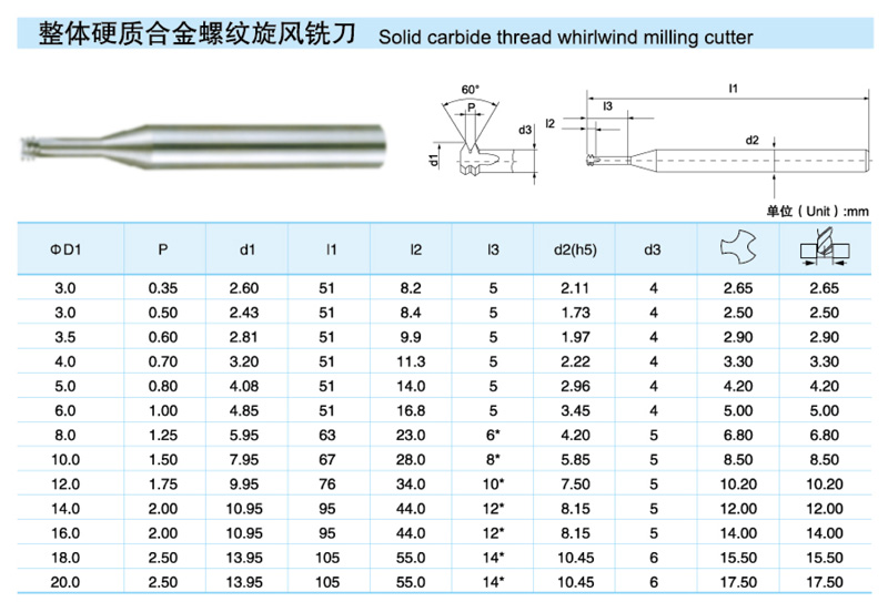 整體硬質(zhì)合金螺紋旋風(fēng)銑刀